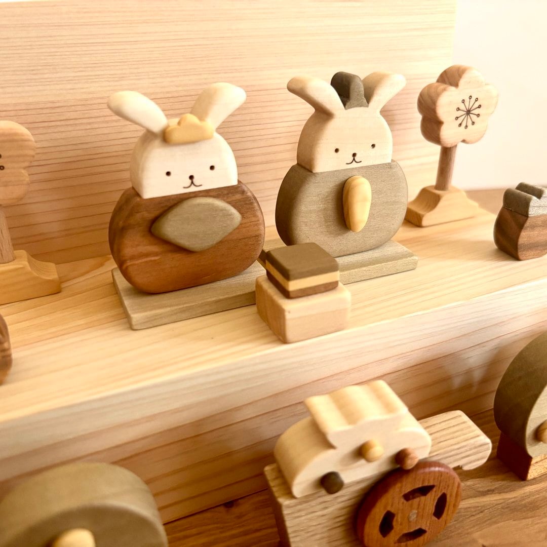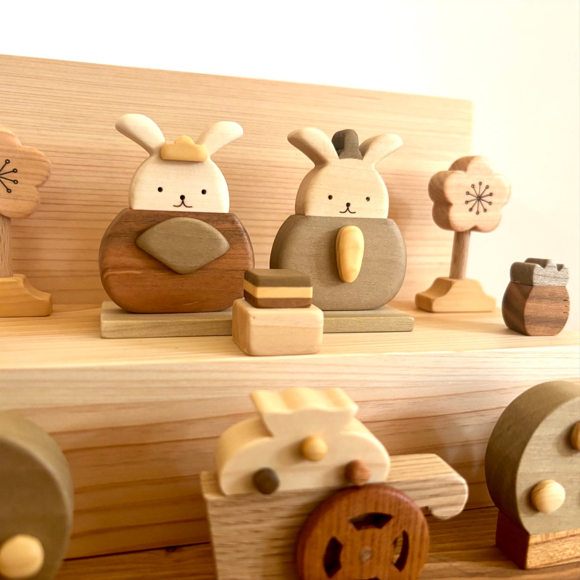 優しい表情と、木の自然な色合いを大切にしたナチュラルな木のひな人形です