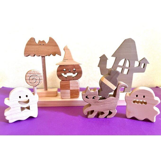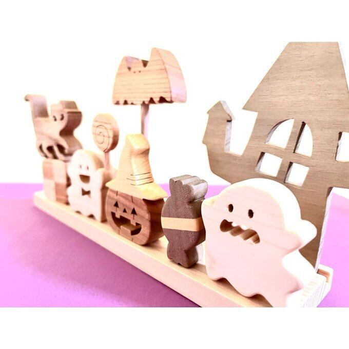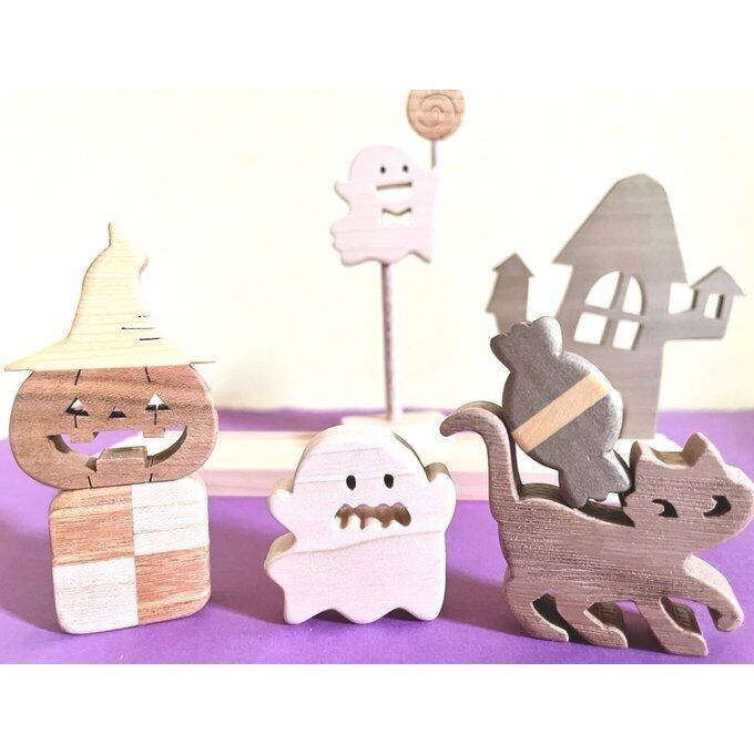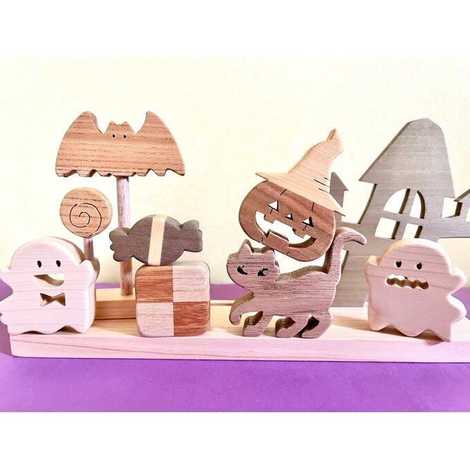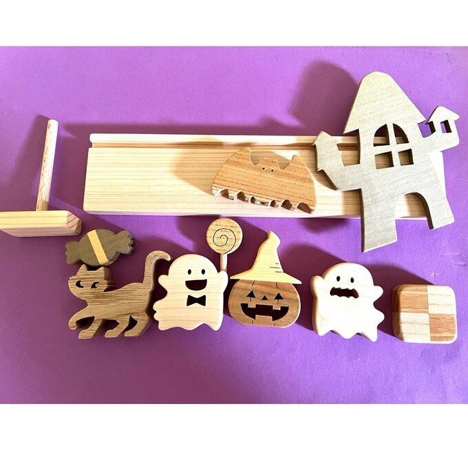 (あめを持っているお化けとコウモリは丸い棒のスタンドに差し込むことができます)